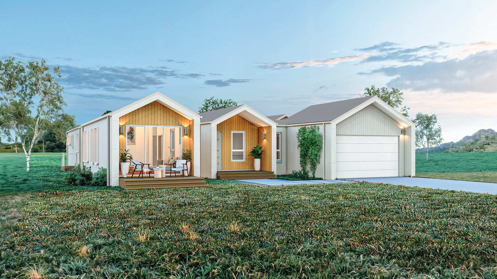 Distinctively pitched at 20° or 27° depending on the design, Scandi roofs are built to suit our climate – with Trimclad® Colorbond® sheeting for clean lines and bold simplicity. Designer half-round gutters add visual appeal and practical performance. Eaves / gable end overhangs where shown on the plan and upgraded insulation keep things cool and calm inside.